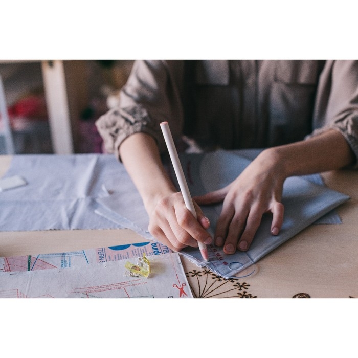Залогом хорошей выкройки являются чёткие, яркие линии. Самозатачивающийся карандаш для ткани обеспечивает ровную прорисовку даже самых мелких деталей. Чтобы подточить карандаш - достаточно потянуть за верёвочку и убрать лишние остатки.