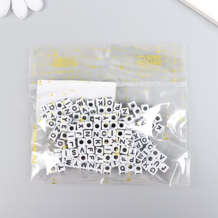 Бусины для творчества пластик "Английские буквы на кубике" белые набор 15 гр 0,5х0,5х0,5 см 547302