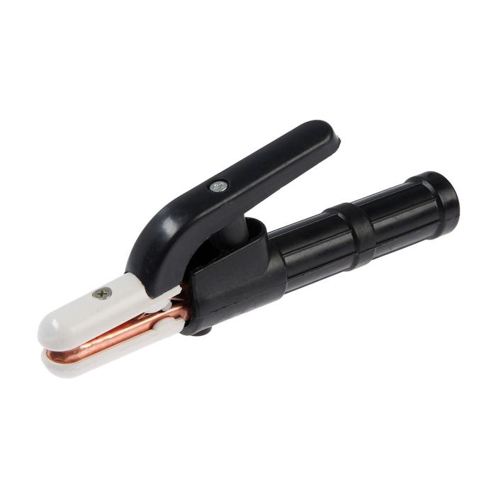 Данный электродержатель предназначен для работы с током не более 500 А. Пластиковые ручки являются изолятором, но при этом важно, чтобы электроведущие части держателя не соприкасались со свариваемым изделием или руками человека.
