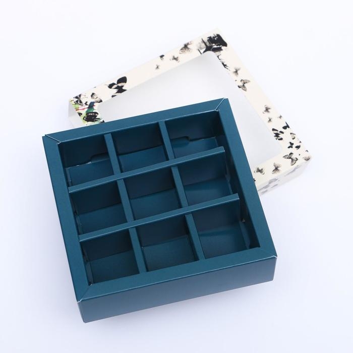 Коробка под 9 конфет с обечайкой " Хорошего дня " с окном 14,5 х 14,5 х 3,5 см