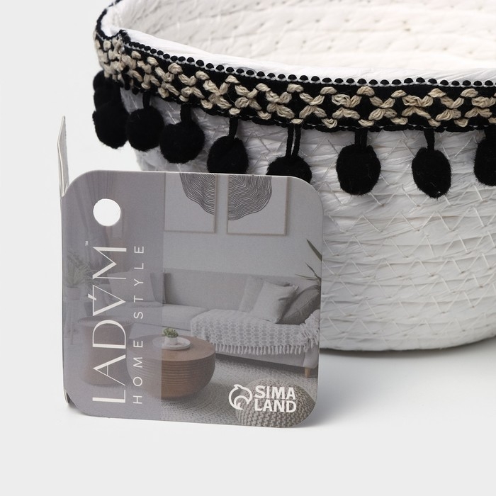 Корзина для хранения LaDо́m «Мокко», плетёная, ручной работы, 16,5×16,5×9 см, цвет белый