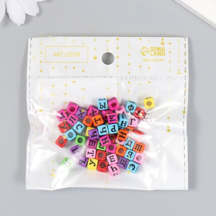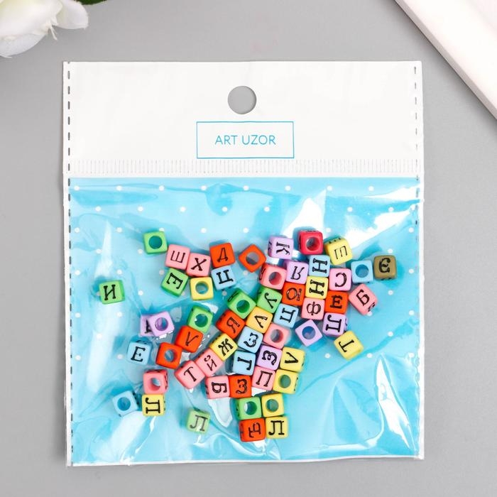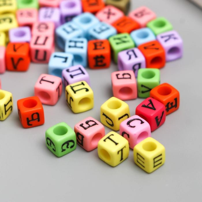 Бусины для творчества пластик "Русские буквы на кубике" цветные набор 10 гр 0,6х0,6х0,6 см
