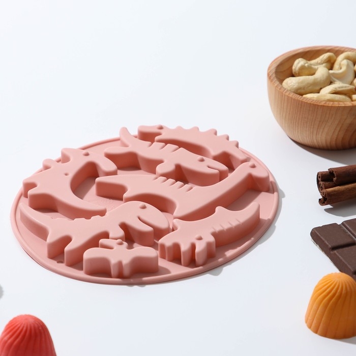 Форма для шоколада Доляна «Дино», силикон, 16,5×14×1 см, 7 ячеек, цвет МИКС