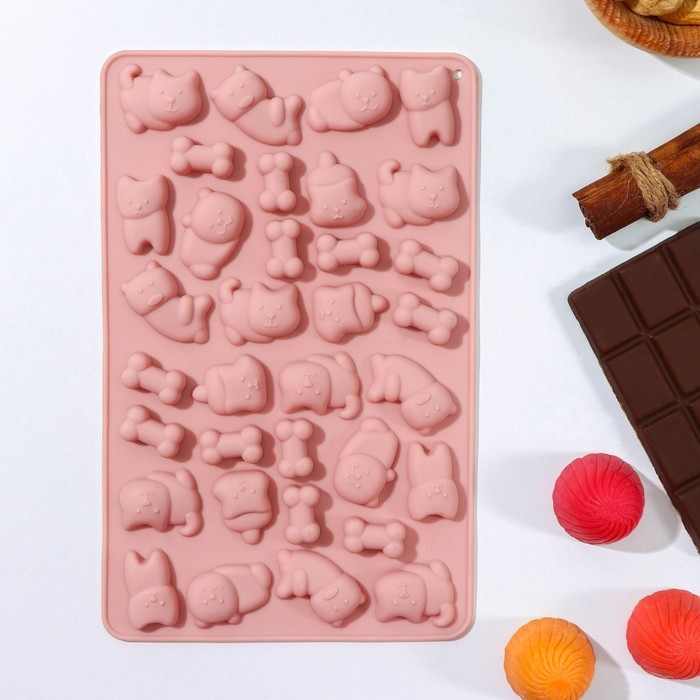 Форма для мармелада Доляна «Домашние питомцы», силикон, 19,5×12,5×1 см, 34 ячейки, цвет МИКС