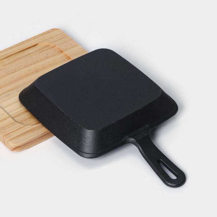 Сковорода чугунная «Квадрат. Гриль», 19×3 см, на деревянной подставке
