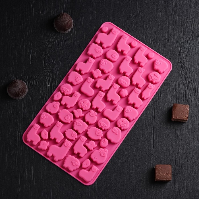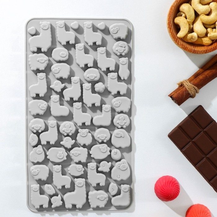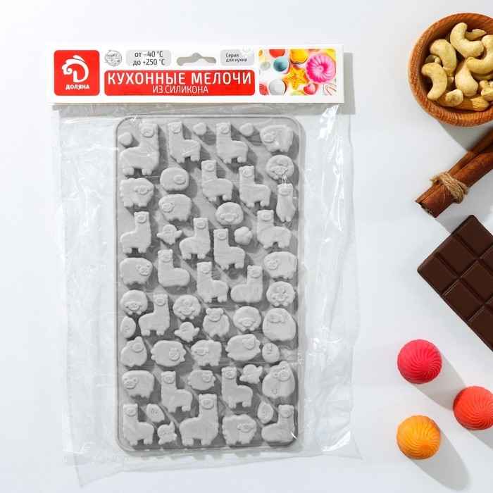 Форма для мармелада Доляна «Ферма», силикон, 23×12,5×1 см, 53 ячейки, цвет МИКС