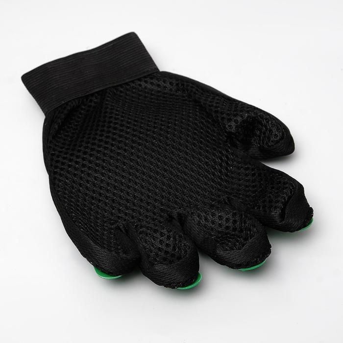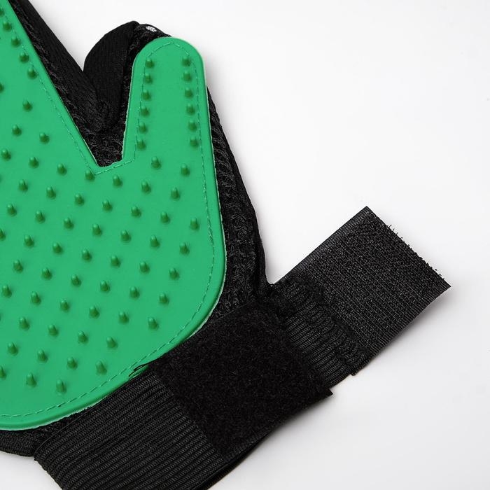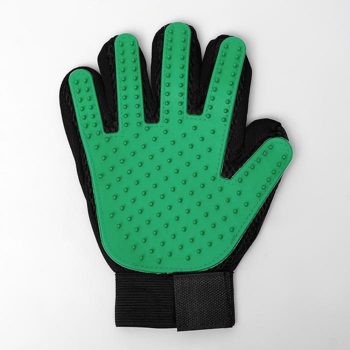 Перчатка - щетка для шерсти на правую руку с удлиненными зубчиками, зелёная