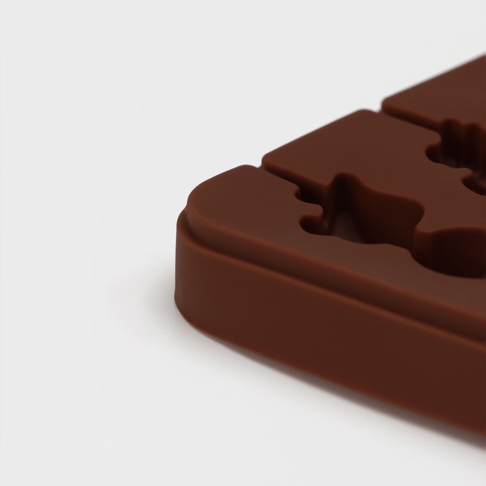 Форма для леденцов Доляна «Поцелуй», силикон, 24×9,4×1,5 см, 6 ячеек (4×2,4 см), с палочками, цвет коричневый