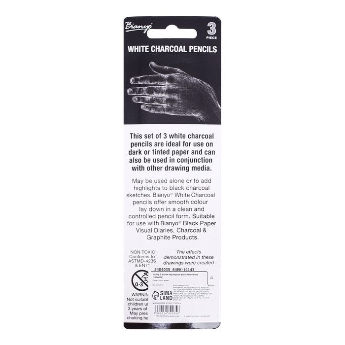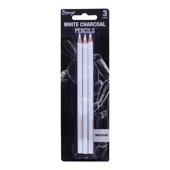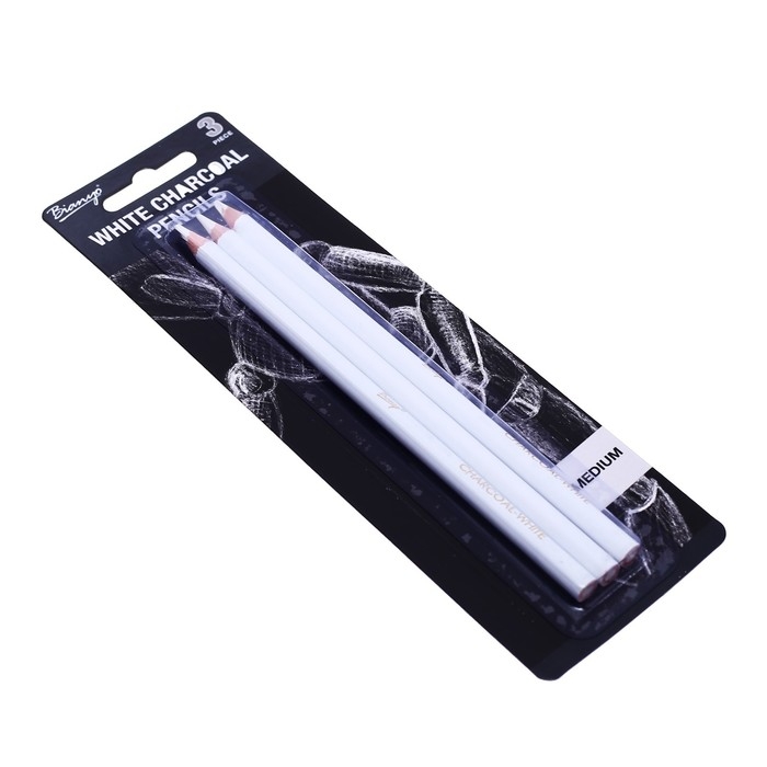 Карандаши угольные, белые, 3 штуки в наборе (средние)