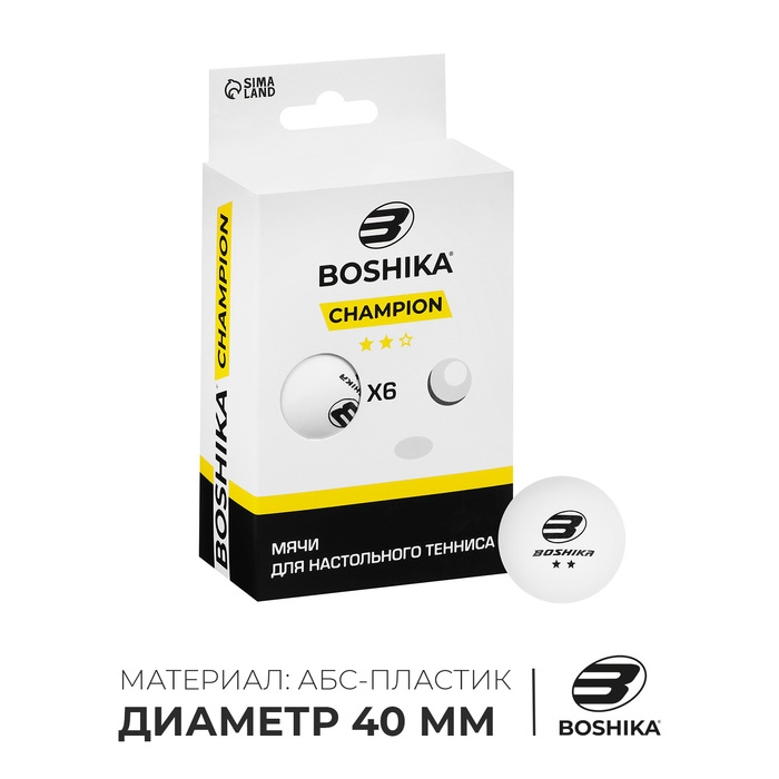 Набор мячей для настольного тенниса BOSHIKA Advanced 2*, d=40+ мм, 6 шт., цвет белый