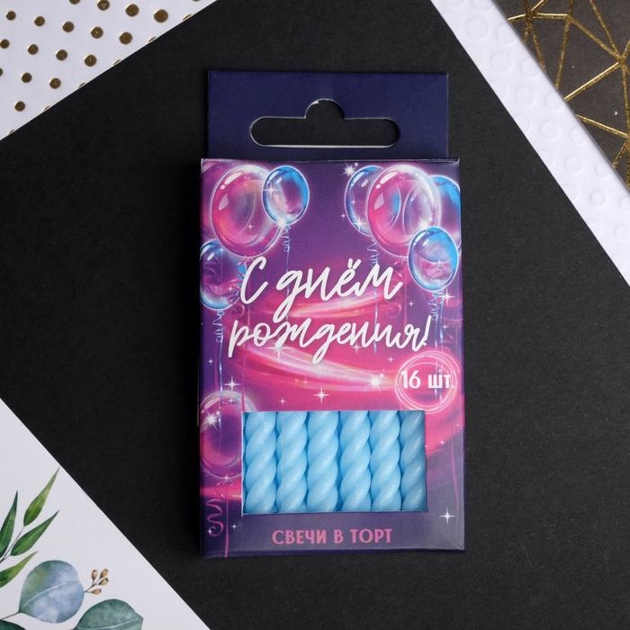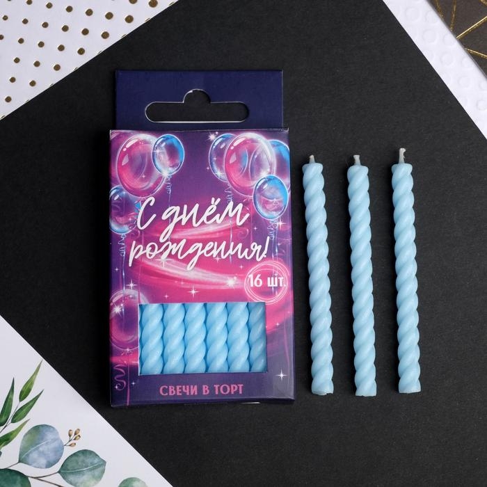 Свечи для торта, голубые , 16 шт., 6,5 х 0,5 см