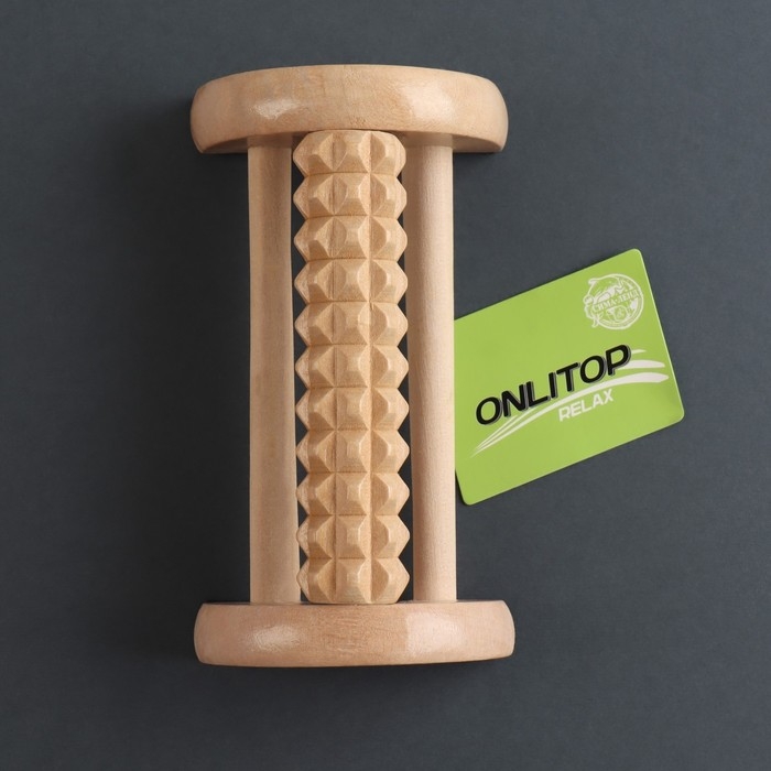 Массажёр для ног с шипами, деревянный, роликовый, 1 ряд, 14,5 × 7,8 × 4,5 см