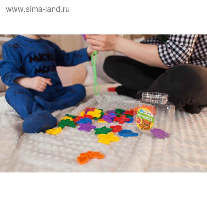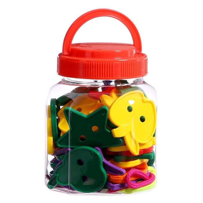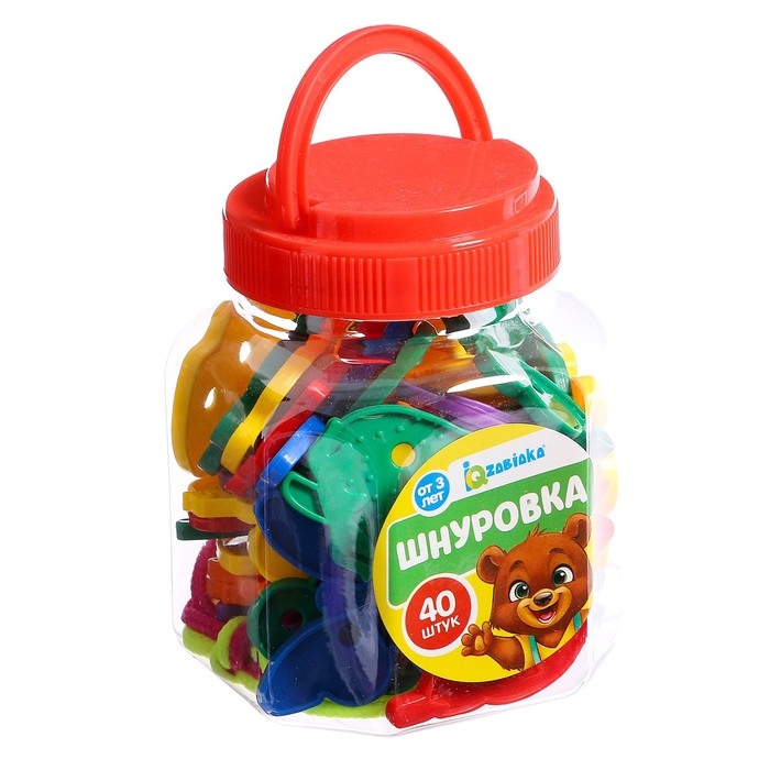 Шнуровка «Весёлые фигурки» в банке, 40 шт., МИКС, по методике Монтессори