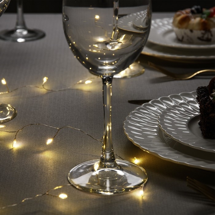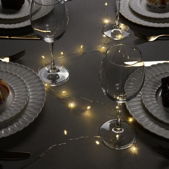 Гирлянда «Мишура» 1 м роса, IP20, серебристая нить, 20 LED, батарейки CR2032х2 (в комплекте), свечение тёплое белое