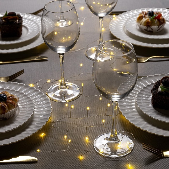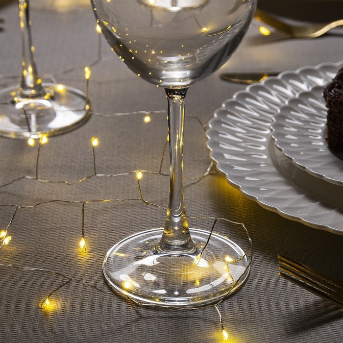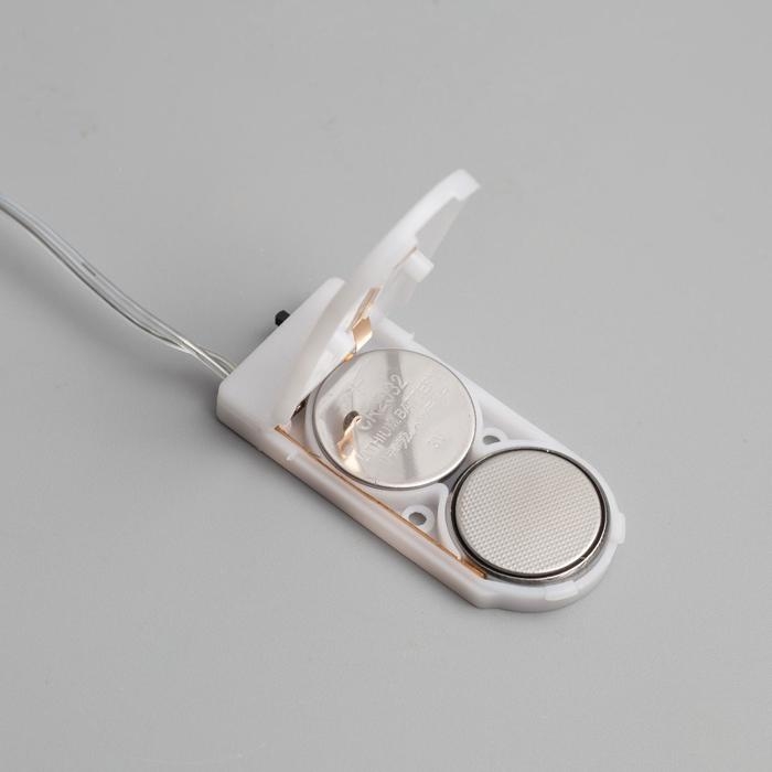 Гирлянда «Мишура» 2 м роса, IP20, серебристая нить, 50 LED, батарейки CR2032х2 (в комплекте), свечение тёплое белое