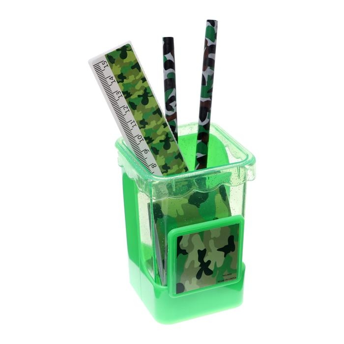 Набор настольный детский "Милитари" (подставка+2 карандаша+линейка+точилка+ластик+блокнот 8 листов)