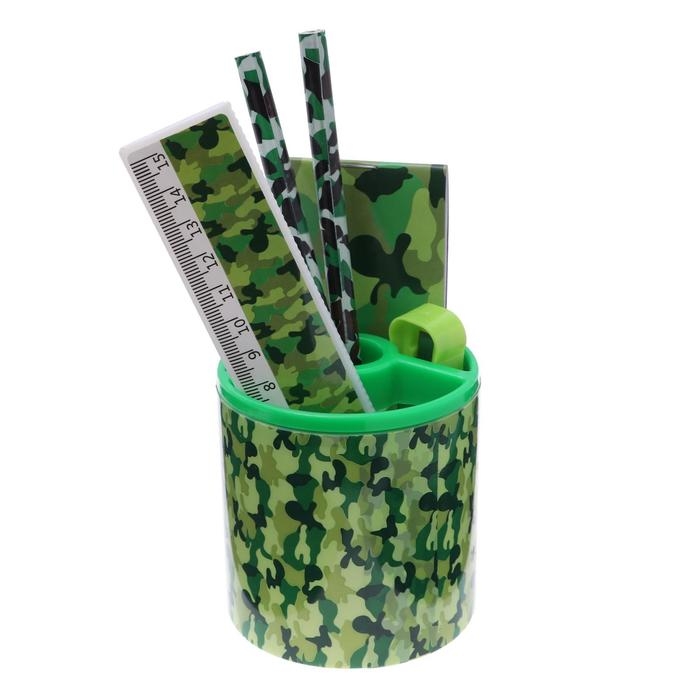 Набор настольный детский "Милитари" (подставка+2 карандаша+линейка+точилка+ластик+блокнот 8 листов)