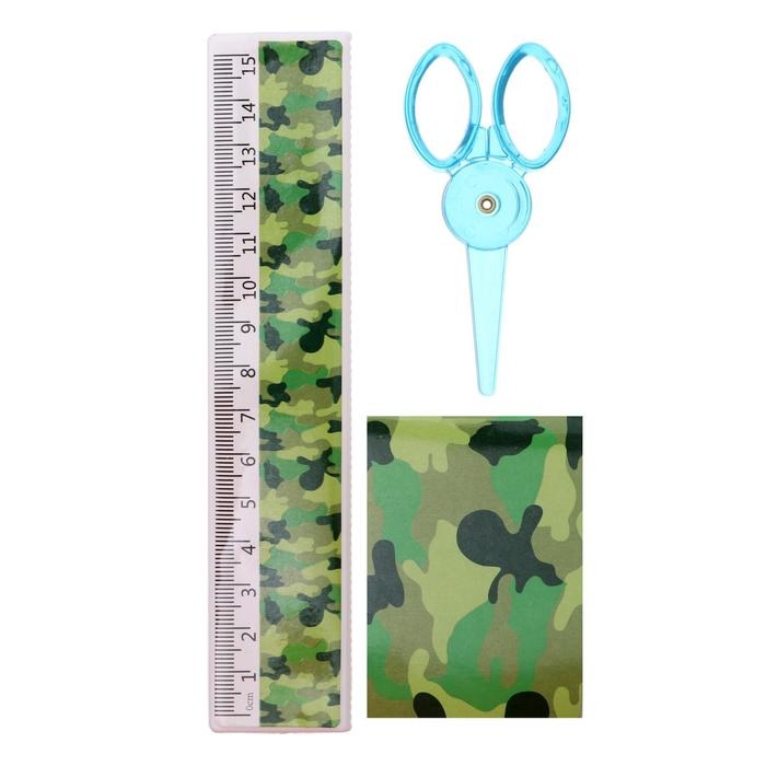 Набор настольный детский "Милитари" (подставка+2 карандаша+линейка+точилка+ластик+блокнот 8 листов+ножницы)