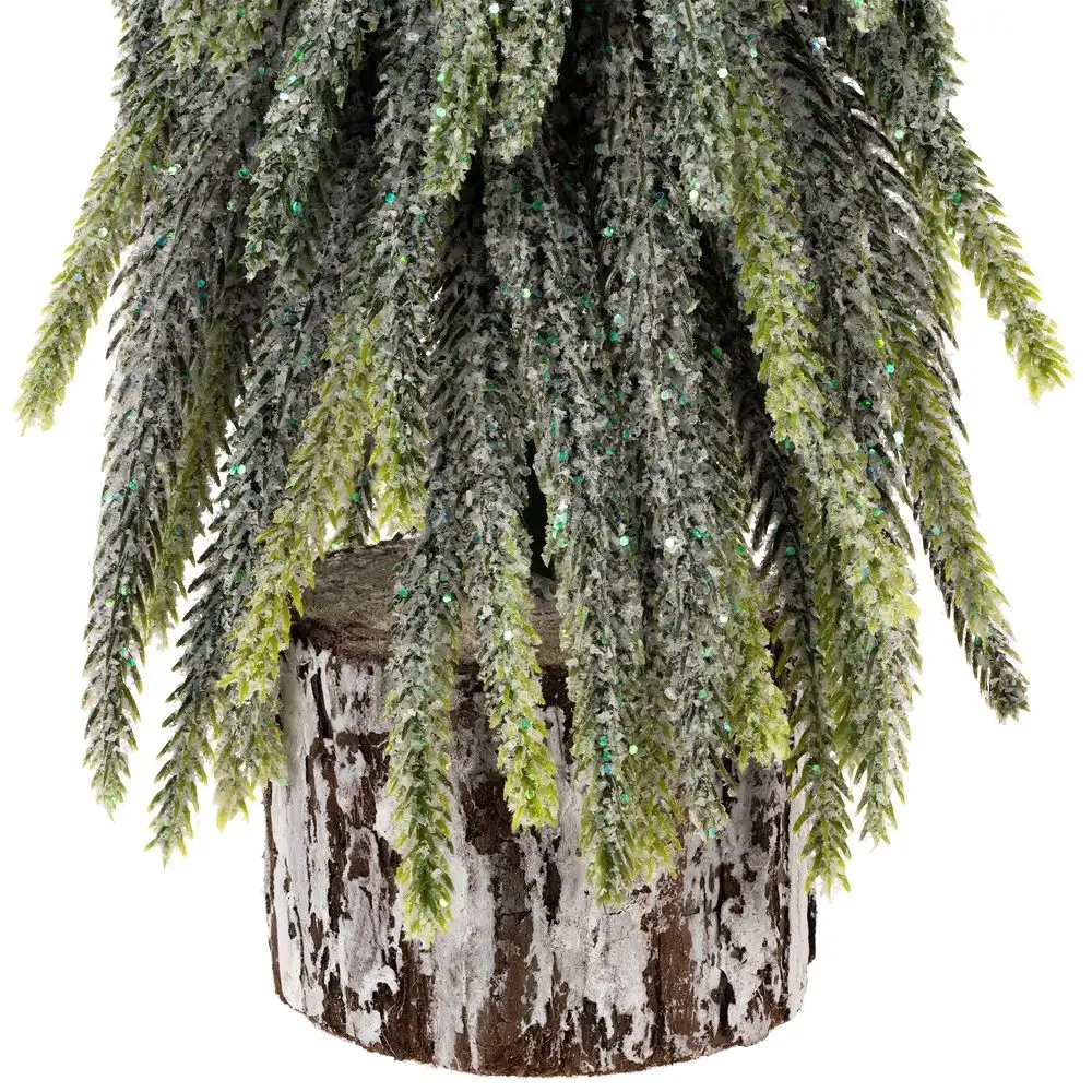 Благодаря литым веточкам елочка выглядит очень естественно, а устойчивая деревянная подставка с эффектной фактурой добавляет всей композиции натуральности и органичности.