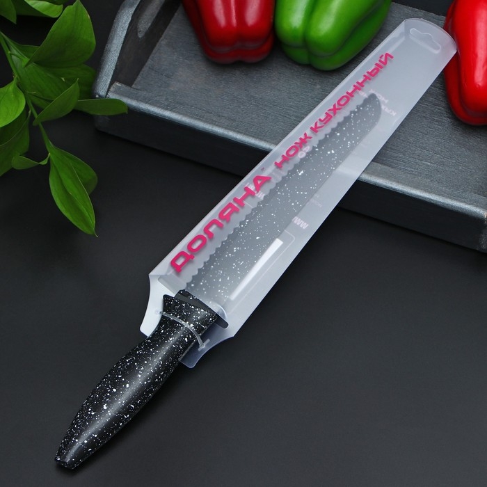 Нож с антиналипающим покрытием Доляна «Зефир», хлебный, лезвие 20 см, цвет чёрный