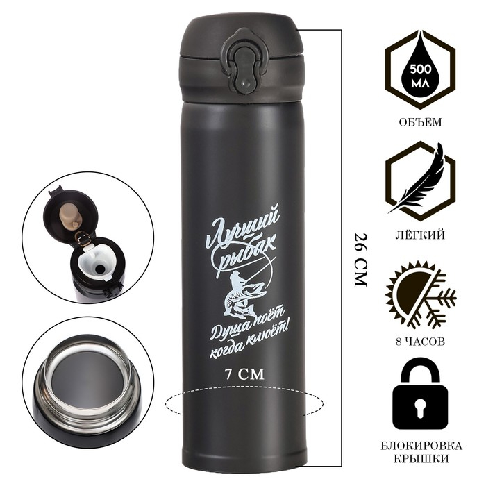 Термос, 500 мл, Топ "Мастер К Лучший", сохраняет тепло 8 ч, 7 х 26 см