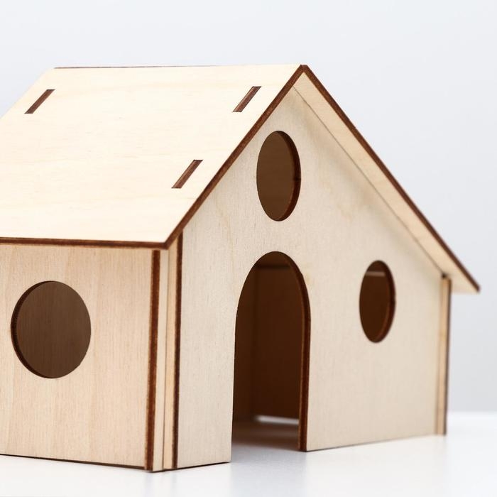 Домик для грызунов изготовлен из фанеры высшего сорта с ошкуренными краями без окрашивания. Во время сна в домике любимец чувствует себя в безопасности. Домик из фанеры - это экологично и безопасно, отличное место для скачек ваших домашних питомцев. Зоотовары - замечательный подарок. Грызуны нуждаются в повышенной активности. С таким домиком животному будет, чем заняться и где отдохнуть.