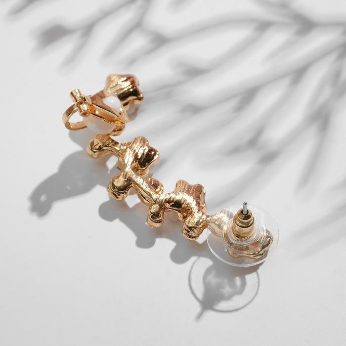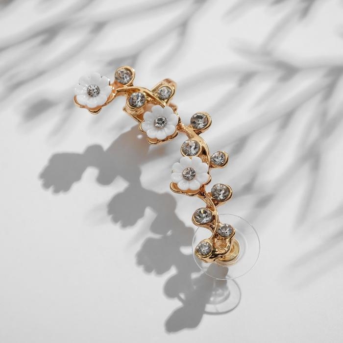 Серьга «Кафф» ромашки со стразами, цвет белый в золоте, L=5 см