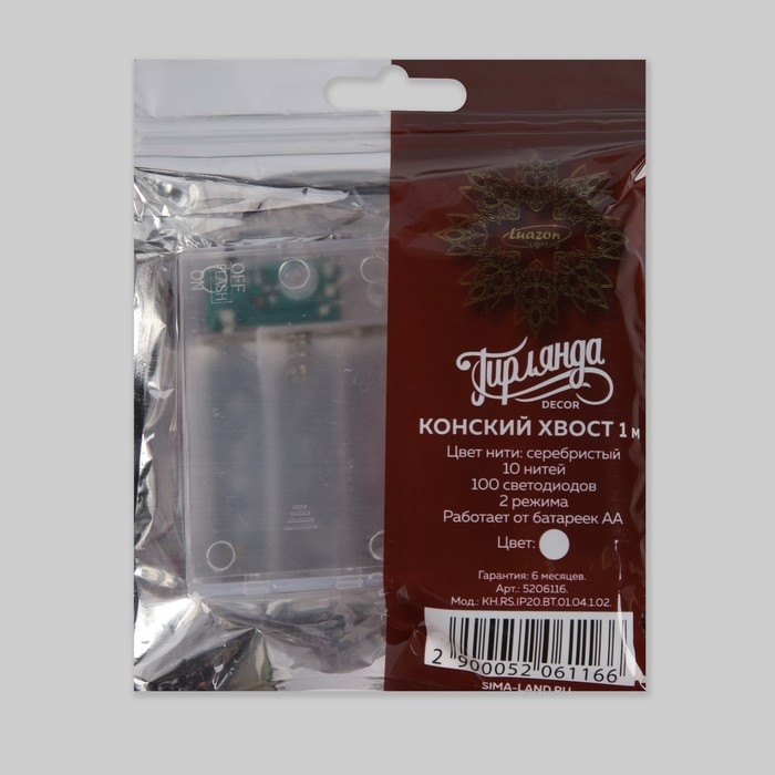 Гирлянда «Конский хвост» 10 нитей по 1 м, IP20, серебристая нить, 100 LED, 2 режима, батарейки AAх3 (нет в комплекте), свечение белое