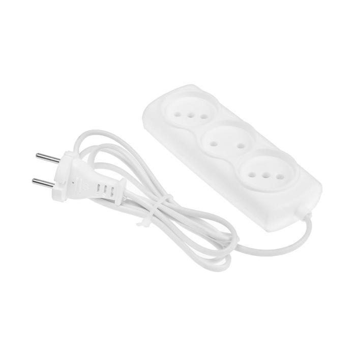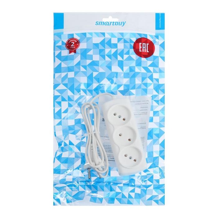 Удлинитель Smartbuy, 3 розетки, 1.5 м, 6 А, 1300 Вт, ШВВП 2х0.75 мм2, без з/к, белый