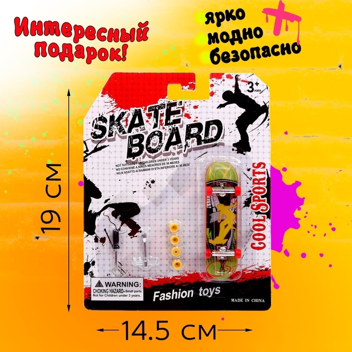 - В комплект входит фингерборд — уменьшенная версия скейтборда.