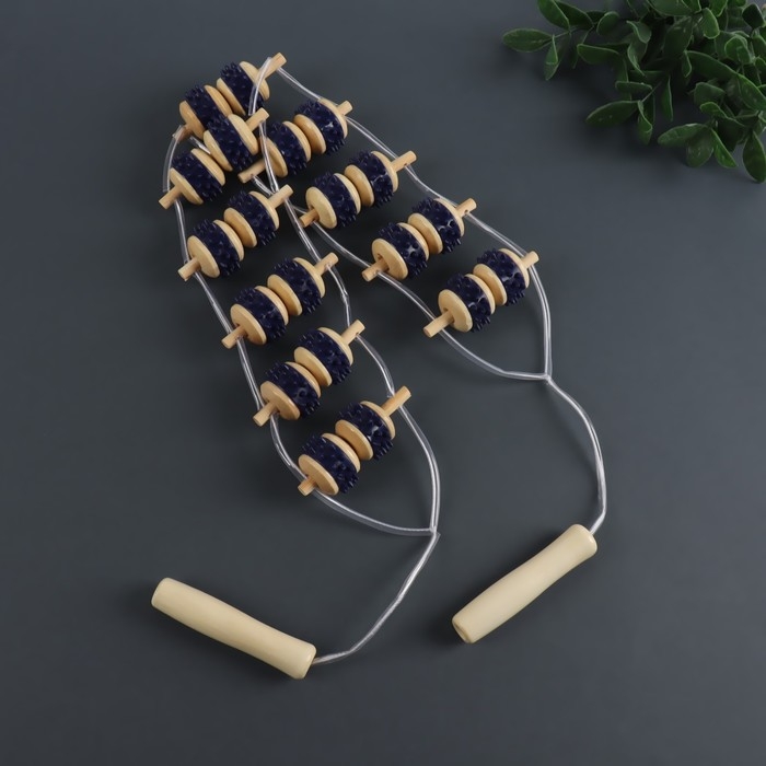 Массажёр «Барабаны», 4 ролика с шипами, деревянный, 26 × 10 × 5 см
