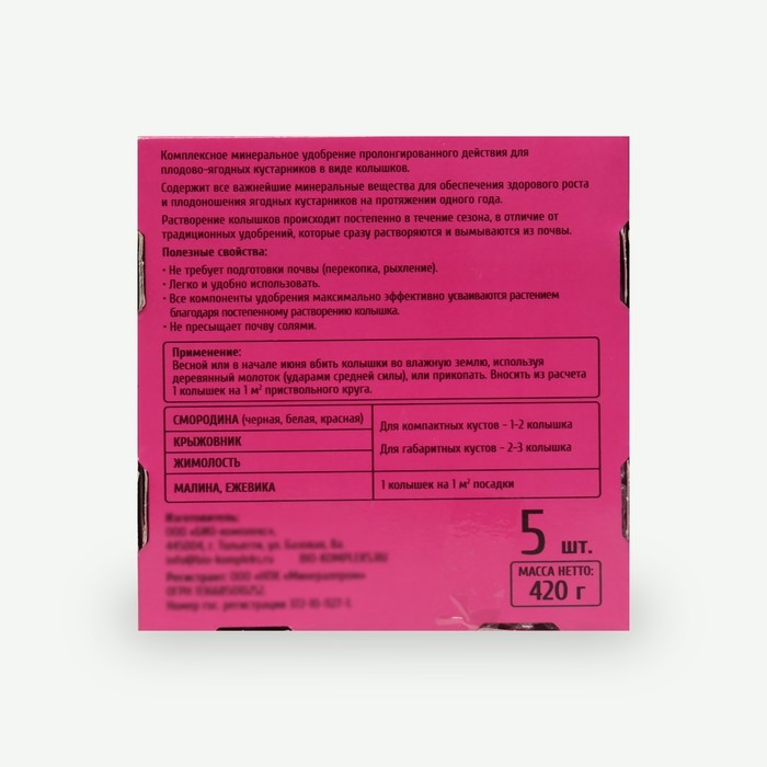 Твердые брикеты – колья. Применяется в качестве основного минерального удобрения для плодово-ягодных кустарников весной либо осенью.
