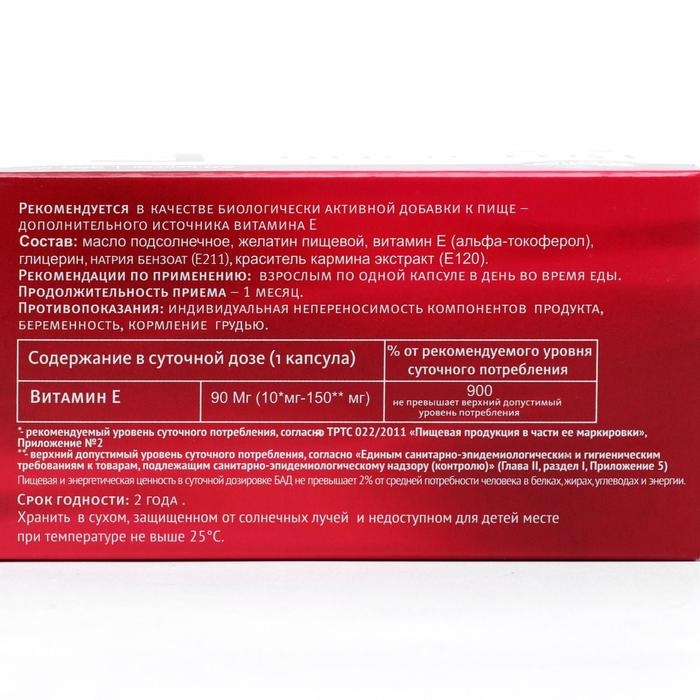 Состав: витамин Е, масло подсолнечное, желатиновая оболочка.
