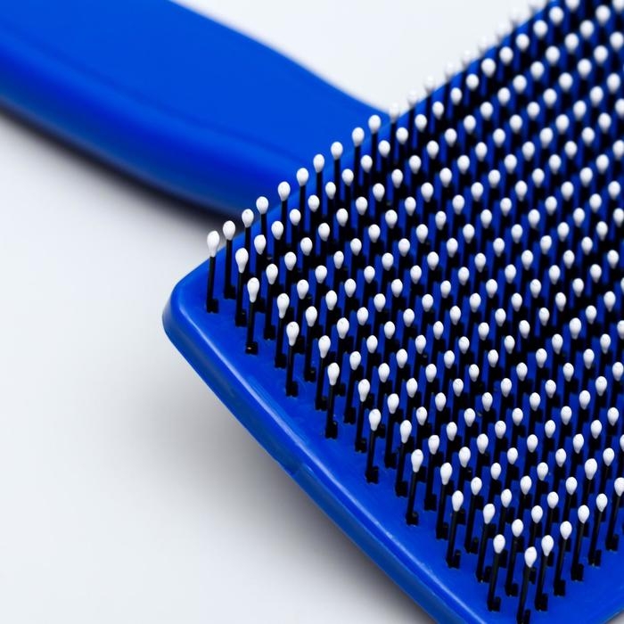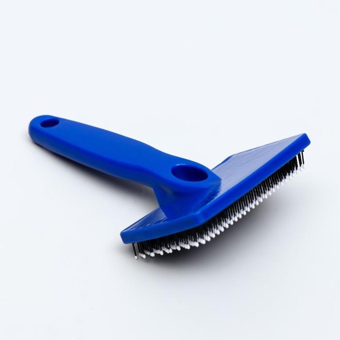 Пуходерка пластиковая мягкая с закругленными зубьями, средняя, 9 х 15,5 см, синяя