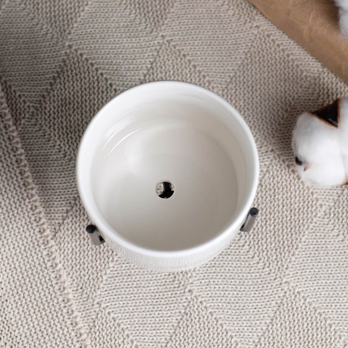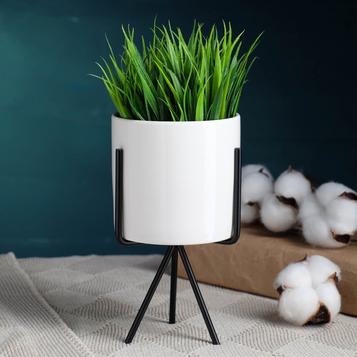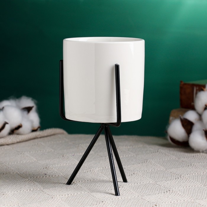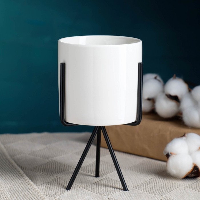 Кашпо "Цилиндр" белое, на черной подставке, 15х8х8см
