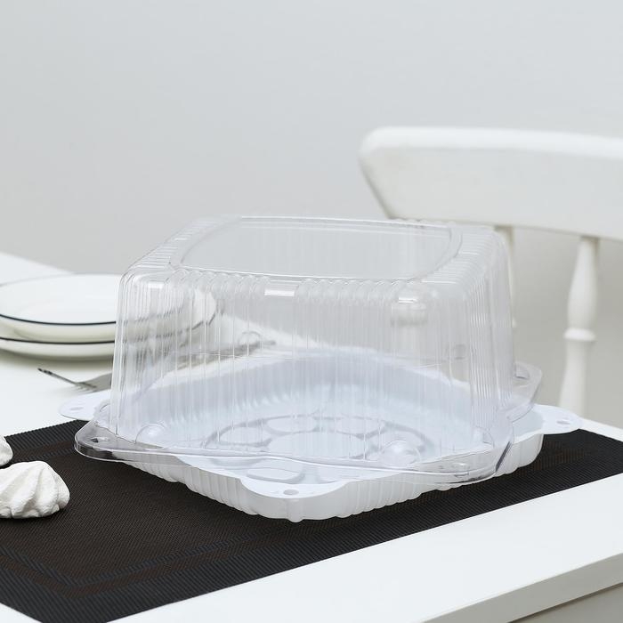 Тортовница пластиковая одноразовая с разъёмной крышкой УТ47, квадратная, внешний размер 24,8×24,8×10,6 см, внутренний 21,4×21,4 см, цвет прозрачный