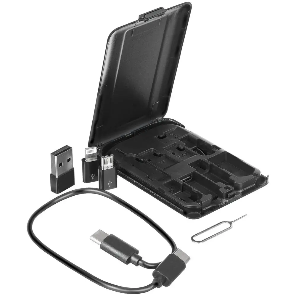 Комплект позволяет обеспечить передачу данных и зарядку для большей части современных мобильных устройств.