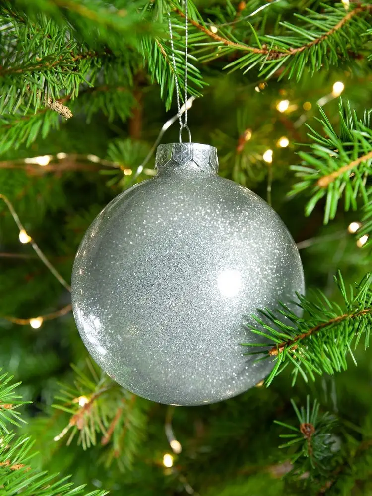 Елочный шар Finery Shine, 10 см, глянцевый серебристый с глиттером
