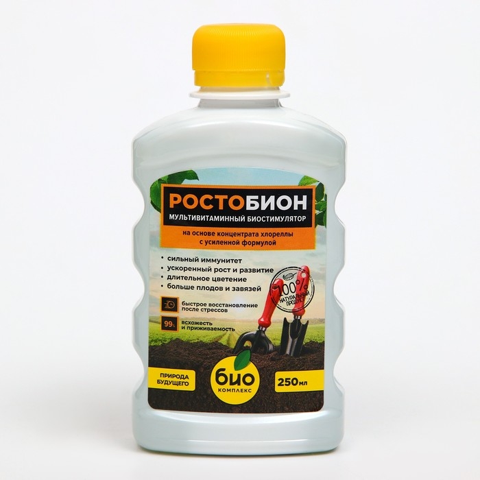 В составе – не только микроводоросли Chlorella Vulgaris, НО и обогащенная культуральная водная среда, фитогормоны (ауксины, гиббереллины, цитокинины), комплекс аминокислот и витамины. Продукт разработан с усиленной формулой для РОСТА, а БИОН – серия российских космических аппаратов, предназначенных для проведения биологических исследований. В результате исследований была разработана усовершенствованная технология, которая используется в Ростобионе для более яркого (по сравнению со стандартным способом производства хлореллы) результата.