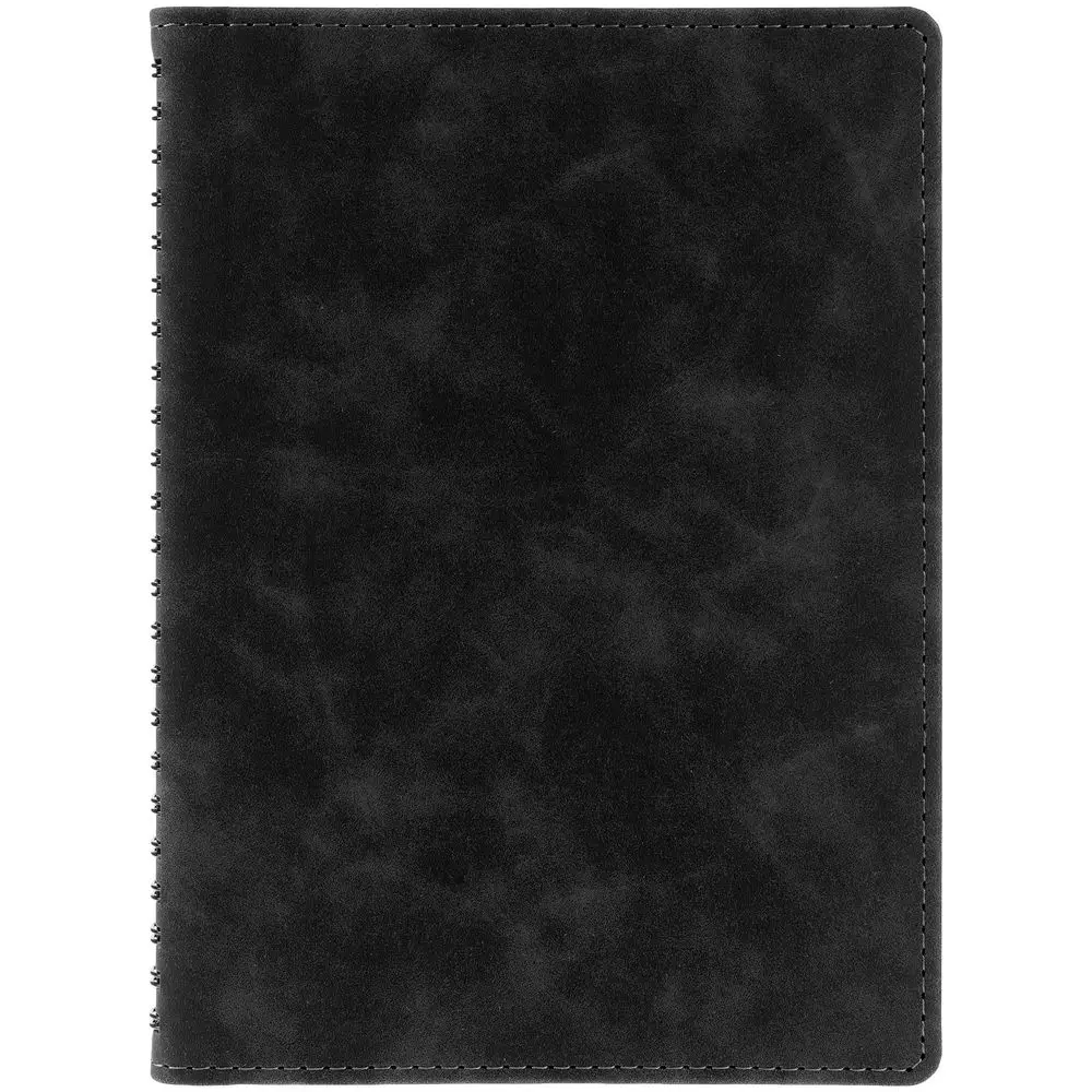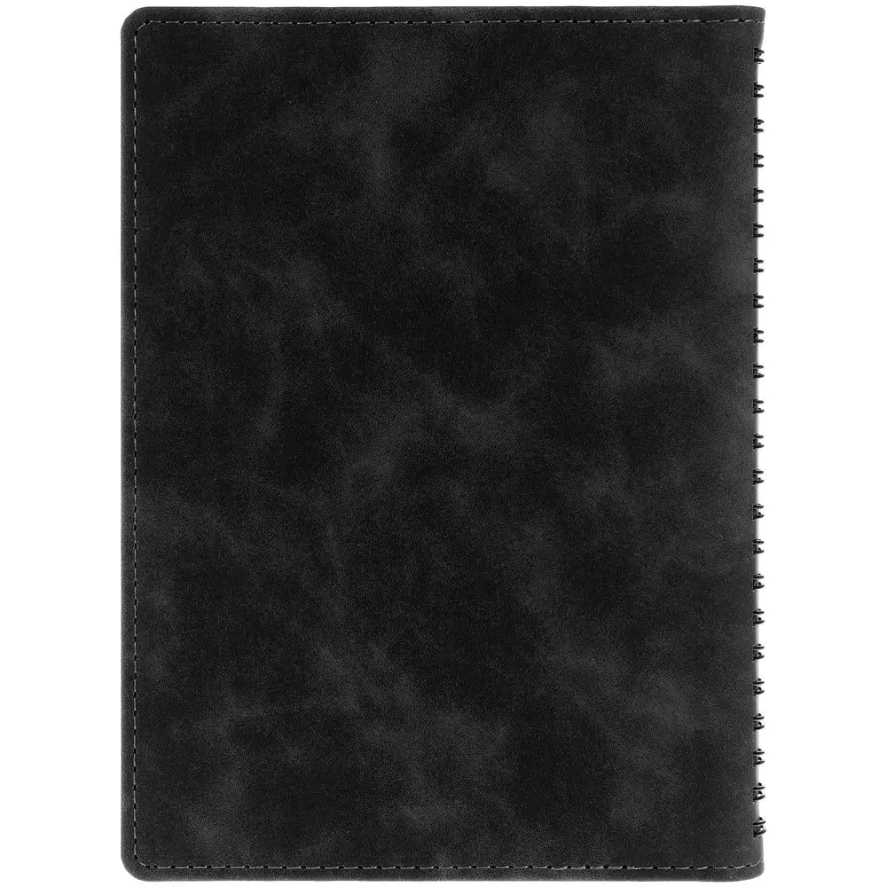 Ежедневник с блоком на пружине в твердой обложке, выполнен из материалов Nubuk Touch, черный AA и Soft Touch, черный AA.