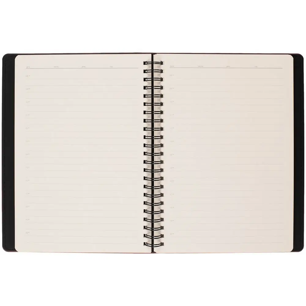 Ежедневник с блоком на пружине в твердой обложке, выполнен из материалов Nubuk Touch, винный SS и Soft Touch, черный AA.