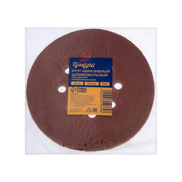Круг абразивный шлифовальный под "липучку" ТУНДРА, перфорированный, 150 мм, Р40, 5 шт.