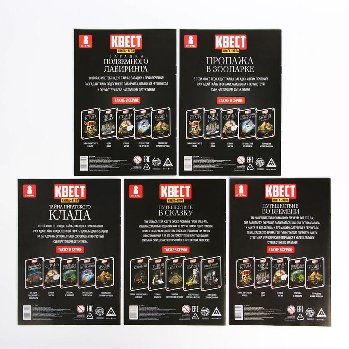 Что такое книга-квест? Это издание с определённым сюжетом, где вас ждёт множество загадок, головоломок, шифров и ребусов. Здесь вам предстоит пройти по подземному лабиринту, отыскать пропажу в зоопарке, найти пиратский клад, совершить путешествие во времени и не только. Это невероятное приключение, которое поможет натренировать логику, смекалку, внимание и способность быстро решать самые сложные головоломки.
