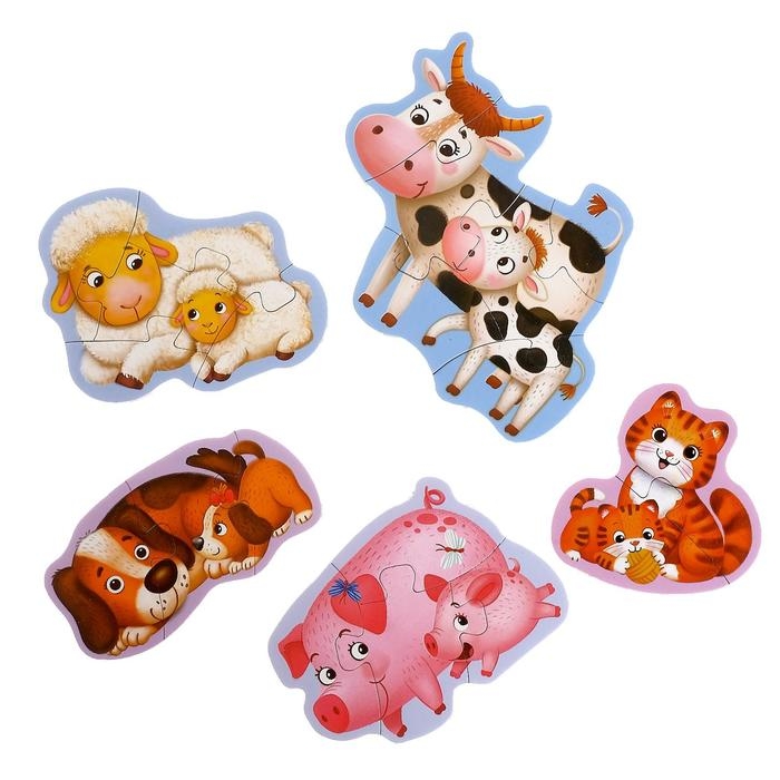 Макси- пазлы «Кто чей малыш», 5 пазлов, 20 деталей