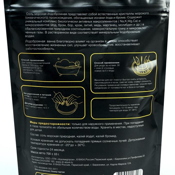 Соль морская природная йодобромная с микроэлементами для ванн, 700 г
