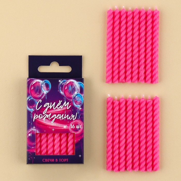 Свечи для торта, розовые, 16 шт., 6,5 х 0,5 см