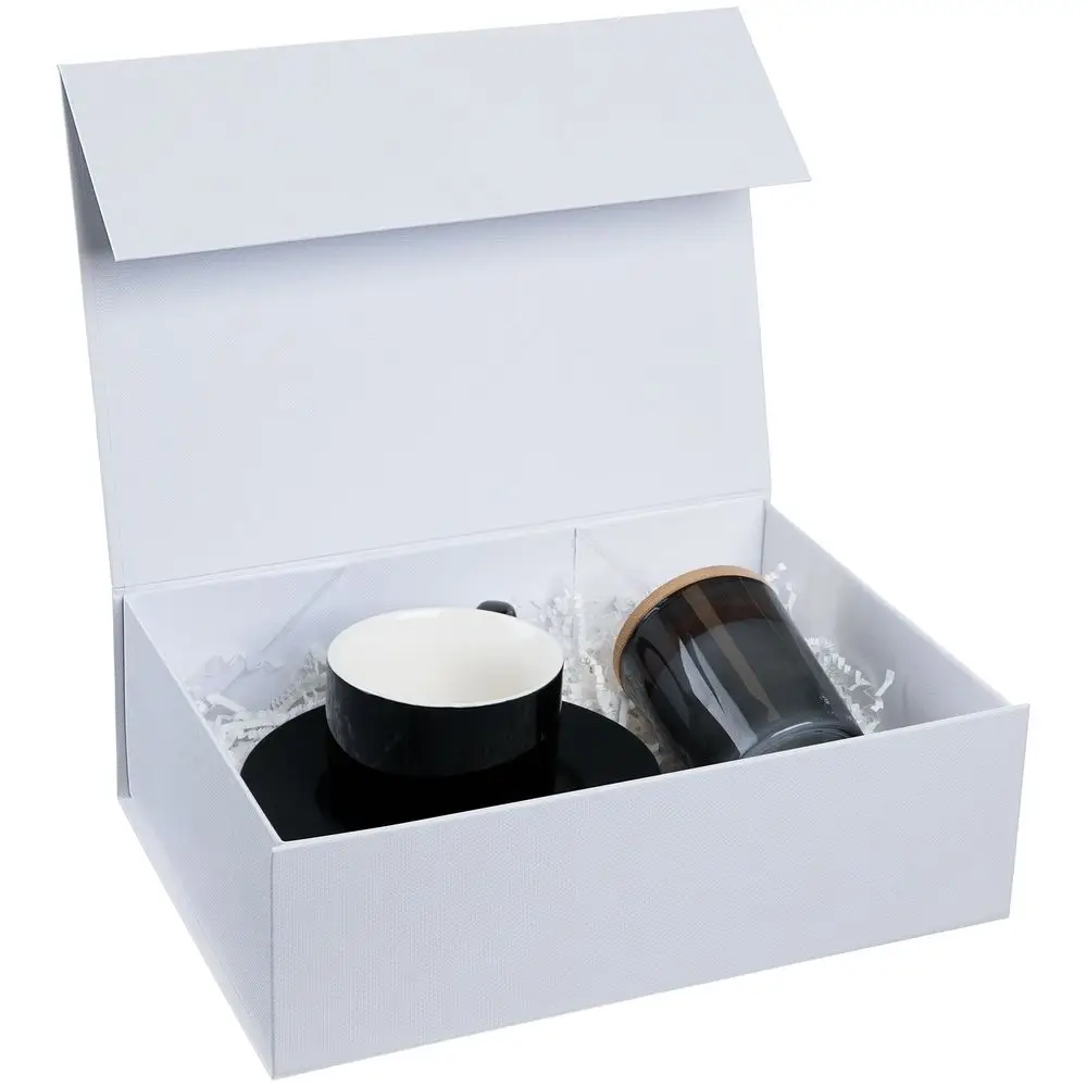 Коробка из переплетного картона, кашированного тисненой тонированной в массе бумагой, с крышкой на магните.