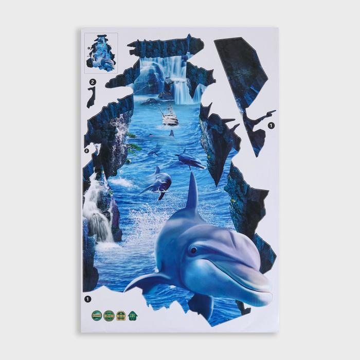 Наклейка интерьерная 3D "Дельфины" на стену, 90 х 60 см, влагостойкая, ПВХ