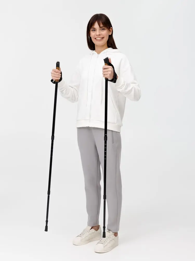 Trekk — палки для скандинавской ходьбы с телескопическим основанием и насадками для разных типов поверхностей. Идеальный выбор для тех, кто хочет улучшить свою физическую форму и укрепить здоровье. Подходят как для неспешных прогулок по городу, так и для активных тренировок.
