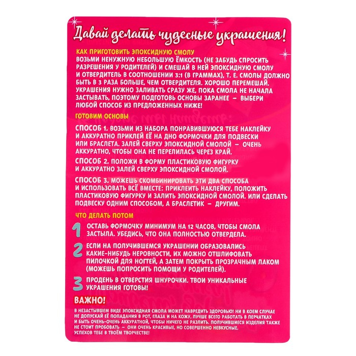 Набор для опытов «Эпоксидная смола», кулоны
